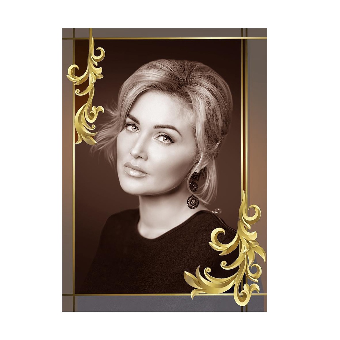 ✔ Объём и глубина изображения – портрет наносится на тыльную сторону стекла, а декоративные элементы располагаются с внешней стороны, создавая эффект многоплановости.