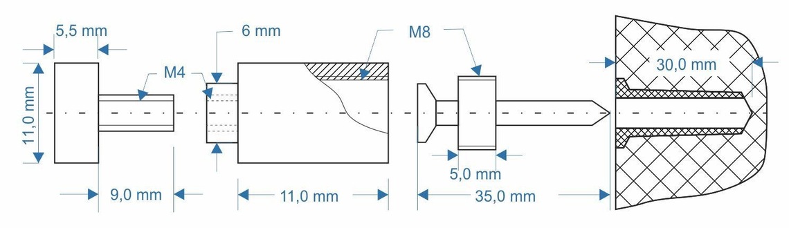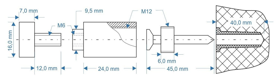 Возможная толщина стекла: 6-8 мм, отверстие в стекле под держатель: 6 мм.