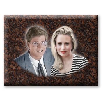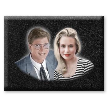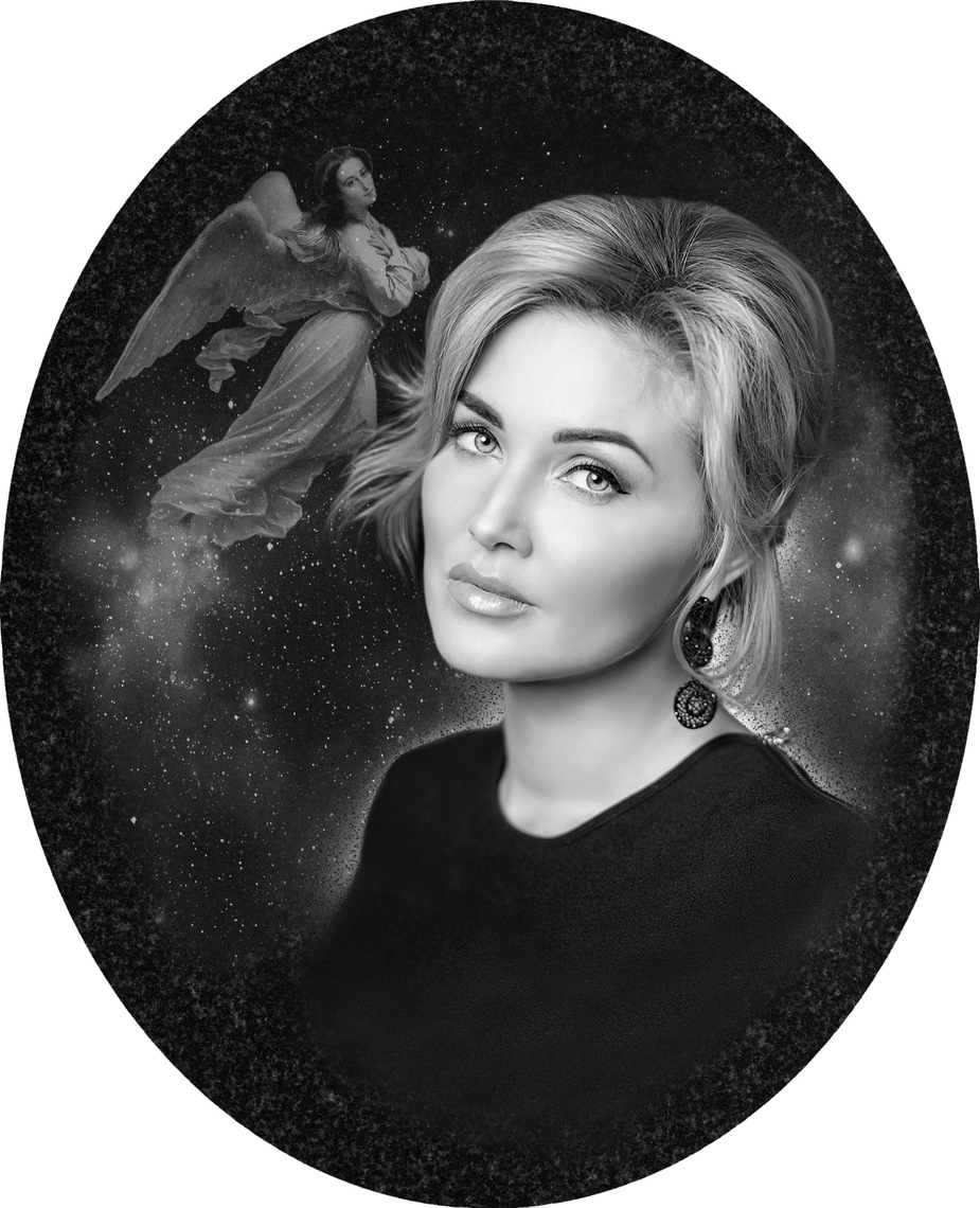 Портрет на керамограните гармонично дополняется гравировкой текста, создавая целостную и благородную композицию. Это решение подойдёт тем, кто ценит эстетику, качество и долговечность.