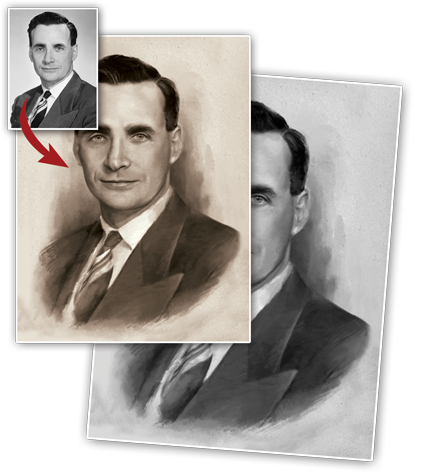Портреты для памятников с авторской обработкой под гризайль (монохромная живопись)