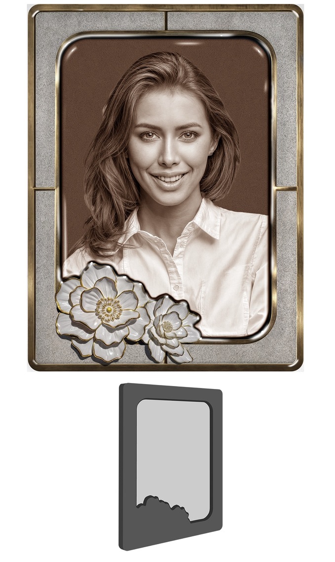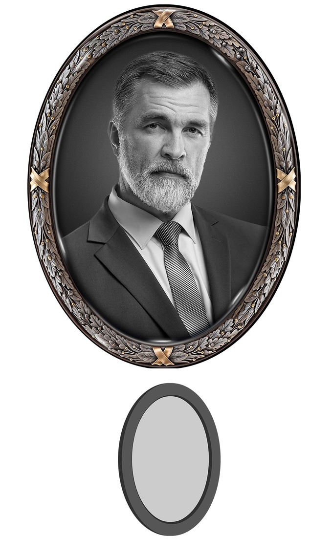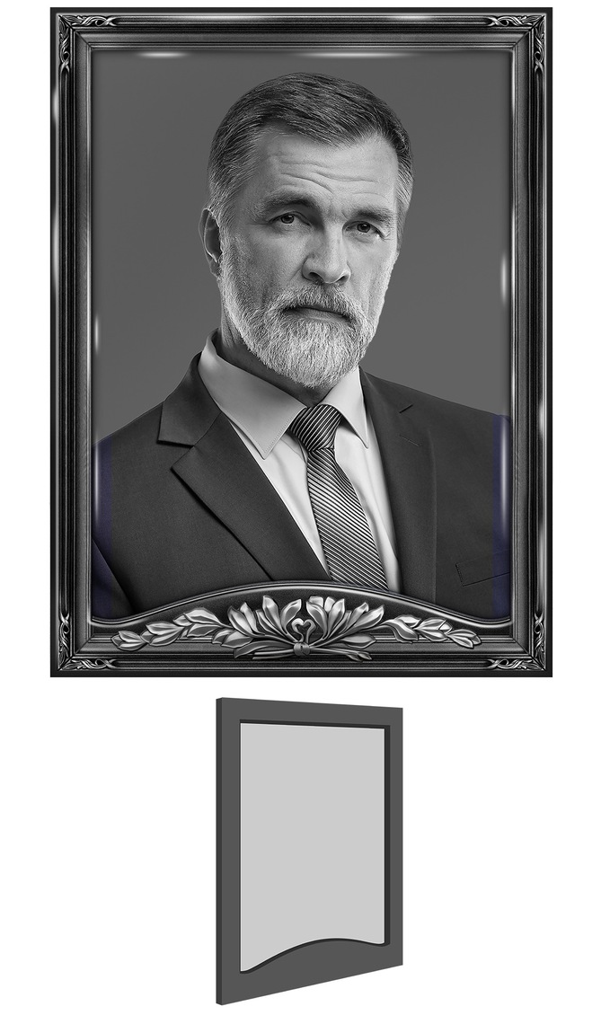 Элементы рельефа имеют выпуклую форму , которая придаёт изделию при изготовлении заготовки.Данные элементы обрамляют портрет , придавая изделию выразительность и глубину , делая его визуально более интересным и имеющим законченный вид.